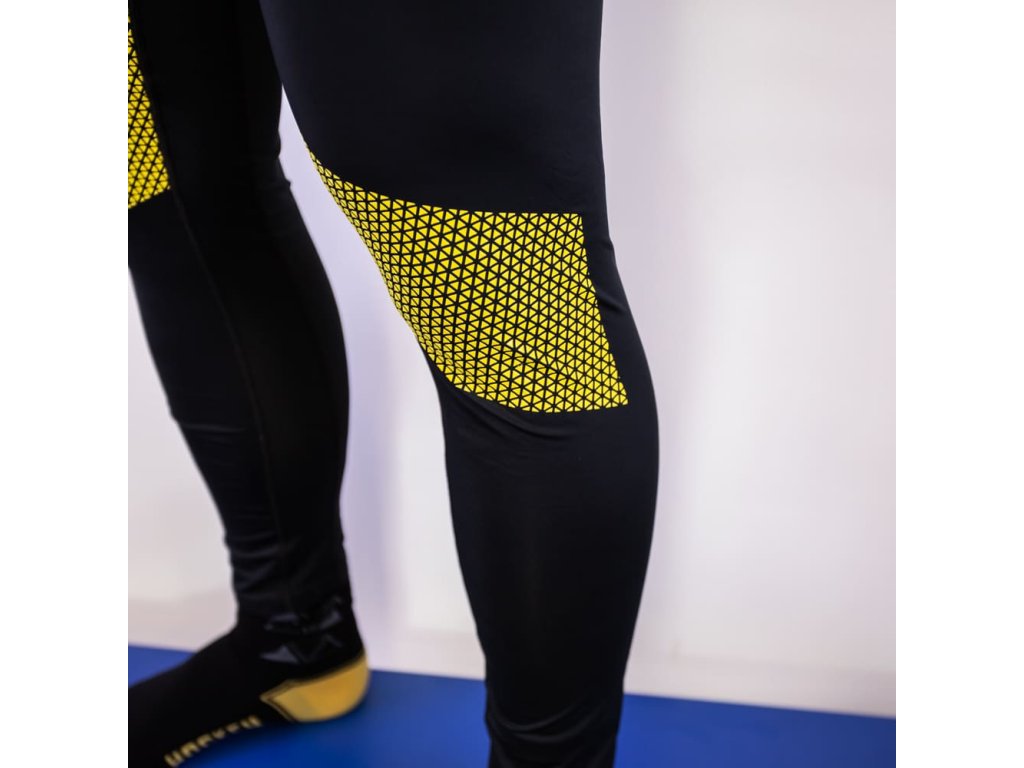 Vylepšená verze ribana / kalhot nabízí speciální pogumování v oblasti kolen, které pomáhá lépe fixovat chrániče holení v pozici tak, aby se nepřetáčely.