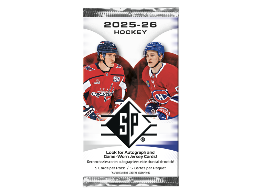 Hokejové NHL karty UD SP Hockey Blaster ze sezóny 2025/26. Balíček obsahuje 5 karet.