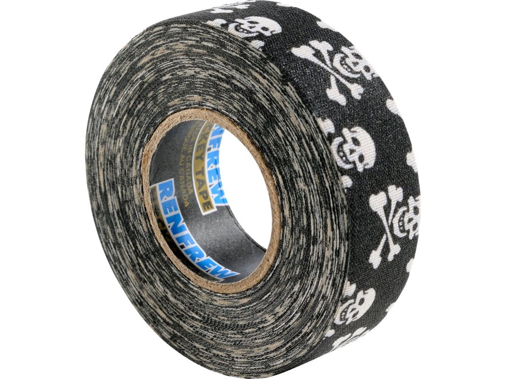 Hokejová páska se vzorem lebek a skřížených kostí s návinem 25 m. Hokejové pásky Renfrew patří mezi nejoblíbenější pásky na hokejky po celém světě. Používají je profesionální hráči v NHL a další hráči v profi ligách. Pásky Renfrew mají výjimečnou výdrž a perfektní lepící vlastnosti, které drží pásku na hokejce. Některé modely mají také zoubkaté okraje, které umožňují trhání pásky ručně. Už si nemusíte nosit nebo půjčovat nůžky. Ať už jste profesionál nebo rekreační hráč, pásky Renfrew jsou jasnou volbou a dobrou investicí, která se 100% vyplatí.